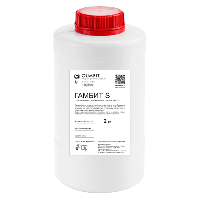 Для чего нужен полиуретановый клей:Полиуретановый клей «Гамбит С» предотвращает преждевременное разрушение покрытия, безопасен для здоровья, обеспечивает создание комфортной спортивной и общественной среды. Обязательно необходимо соблюдать правильные пропорции и технику нанесения, чтобы в покрытии не образовывались пустоты и не появлялось отслоек.